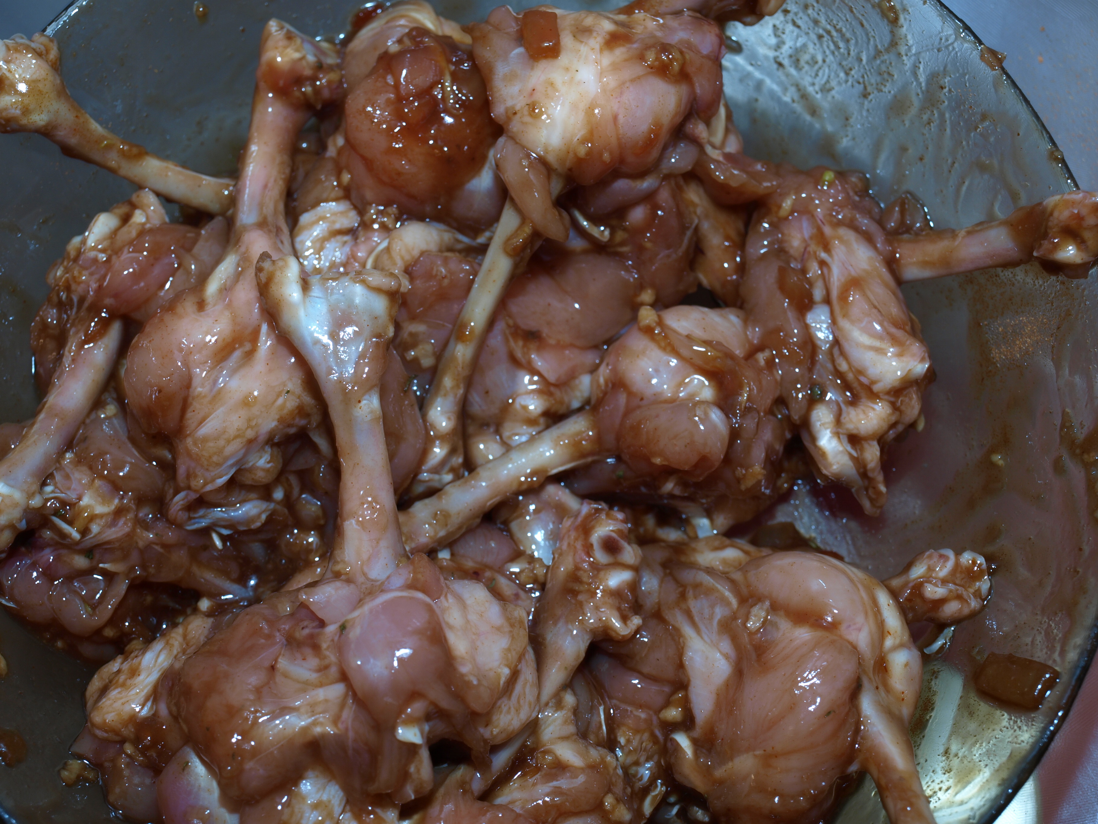 Se pregateste sosul pentru marinare din restul ingredientelor si se pun aripioarele la marinat 4-5 ore.