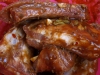 Se curata costitele de pielita pe ambele parti; se pregateste sosul pentru marinare (din restul ingredientelor); se dau costitele prin sos si se pun la marinat in frigider sau intr-un loc racoros. Inainte cu o ora si jumatate de a fii servite se scot de la marinat, se pun in tava cu putin apa, se acopera cu o folie de aluminiu si se baga in cuptorul incalizt la 200 grade. Pe cand sunt aproape facute sa da folia de aluminiu la o parte, cuptorul la 180 de grade si cand sunt rumenite costitele se scot din cuptor.