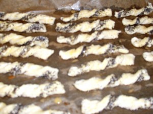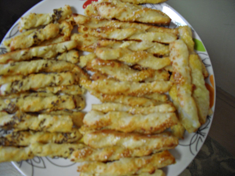 Untul se freaca cu faina, se adauga apoi oul, smântâna, brânza, si sarea. Se intinde o foaie , se presara cu chimen se unge cu ou apoi se taie fasii. E dau la cuptor la foc mediu.