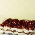 6. Mie imi place sa pun crema pe fundul tavii inainte si nu piscoturi pentru a fii mai cremos, insa nu este o regula anume, depinde cum doriti sa il serviti. Asadar se pune pe fundul tavii un strat de crema, apoi un rand de piscoturi, peste inca un strat de piscoturi, iar la final un strat de crema si deasupra se presara ciocolata razuita sau cand e scos cacao cu o sita.